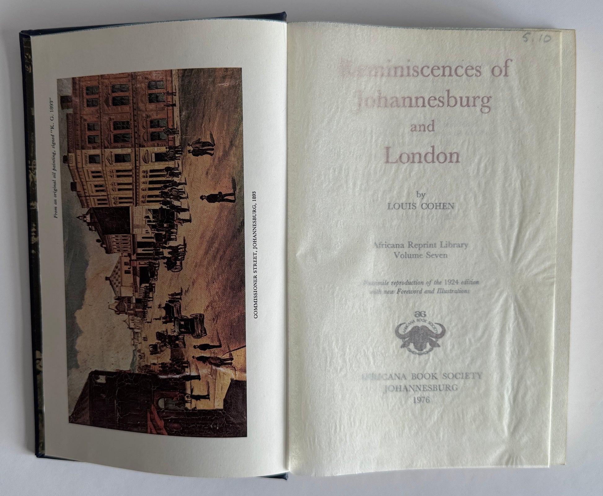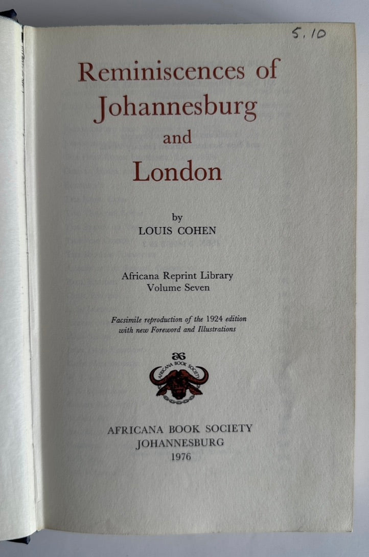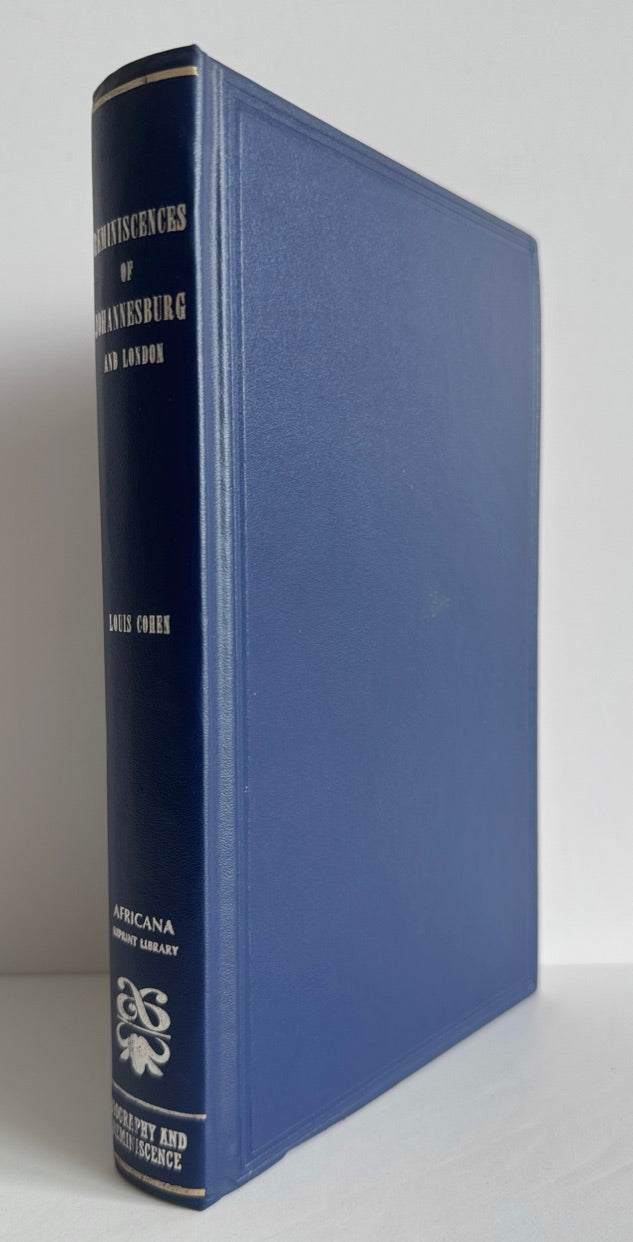 Facsimile hardcover (no dustjacket) reprint of the 1924 edition with new foreword and illustrations by Louis Cohen, offering personal reflections on life in both cities, particularly the early years of Johannesburg's gold rush. The book covers various aspects of life, including social interactions, business ventures, and scandals. It's considered a valuable historical document, and provides an entertaining view of the time. Louis Cohen was a cousin of Barney Barnato, a British Randlord and diamond magnate.