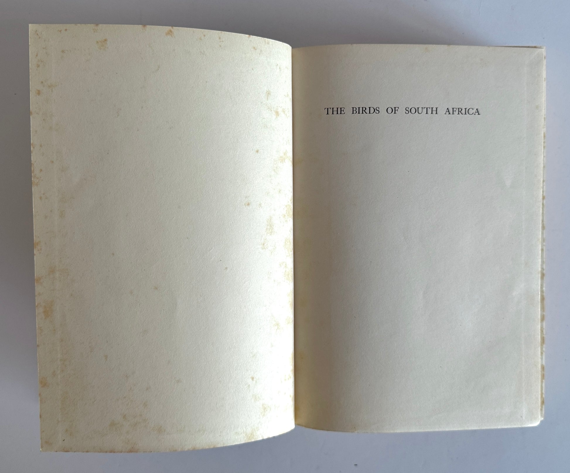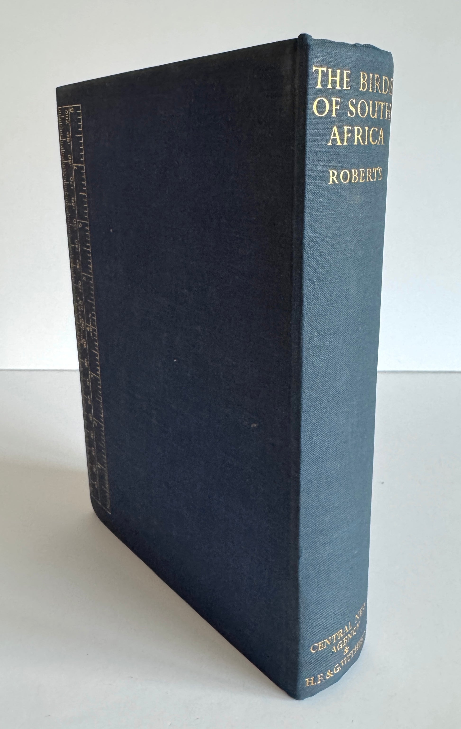 1st edition, first impression, hardcover copy of The Birds of South Africa by Dr Austin Roberts, published on 8th June 1940. A second impression was published on 17th December of the same year. A comprehensive guide to South African birds with detailed descriptions and 56 colour plates of birds illustrated by Norman C.K. Lighton. The book is considered to be a foundational work in South African ornithology and was the first fully illustrated guide to South African birds, covering over 1,000 species with maps and habits. First edition copies of this seminal work are scarce and highly prized by collectors. Externally, original blue cloth covers with gilt titling on the spine and measurement ruler in gilt on the back cover. No dustjacket. There is foxing to the page edges. Internally, there is some browning to the back pages of the illustrated plates and seems to be due to the type of paper used but otherwise this is in very good condition.